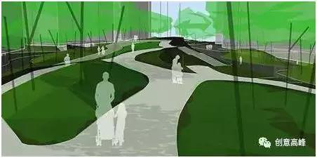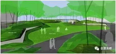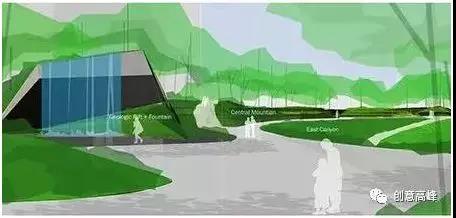 他的方案所營造出來的不僅僅是某一個局部綠化造景的自然怡人,而是重現(xiàn)了山地、峽谷的自然風貌,從場地整體結構上重塑了地塊的原有狀態(tài)。