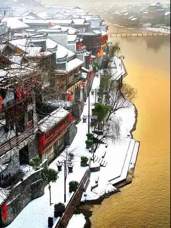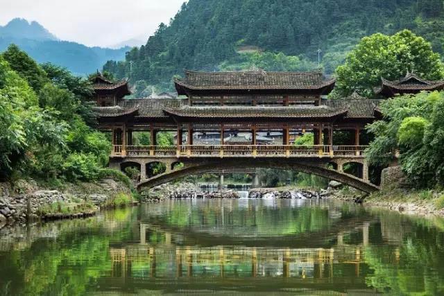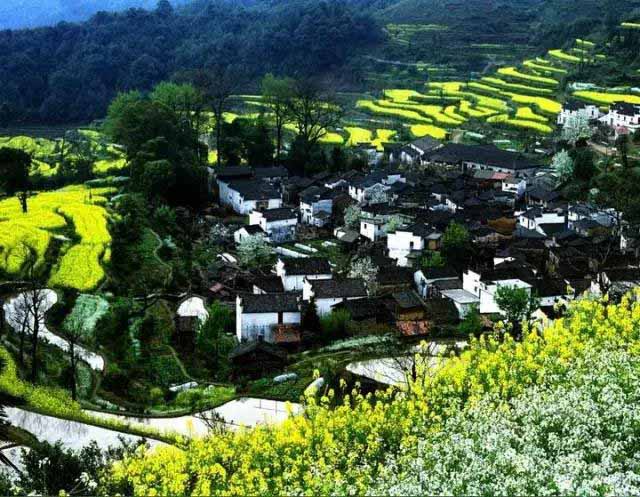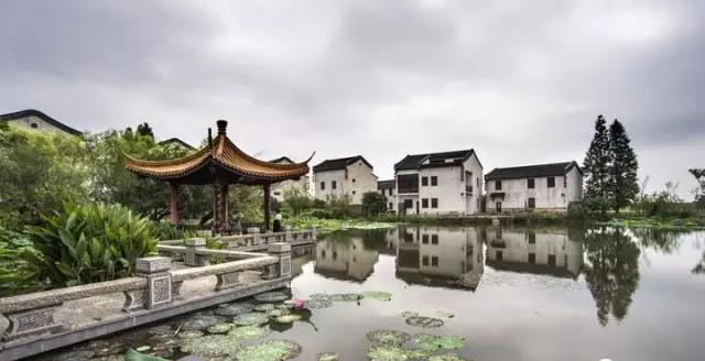 灰瓦白墻和高大的門樓,門樓墻壁有精致的雕花,屋頂?shù)牡窕ǜ鼮榫旅利?,整個(gè)建筑里有一套貫通的水系,再加上綠樹成陰、群山呼應(yīng),讓你有種置身仙境感。